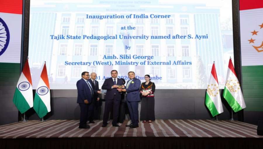 Торжественное мероприятие прошло в рамках визита заместителя министра иностранных дел Республики Индия Сиби Джорджа, который прибыл в Таджикистан для участия в политических консультациях между министерствами иностранных дел двух стран.