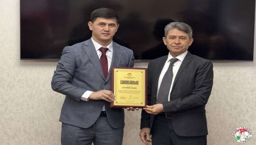 В офисе Федерации футбола Таджикистана состоялась церемония вручения благодарственной грамоты арбитру ФИФА по футзалу Сухробу Сатторову, который обслуживал финал Кубка Азии-2026.